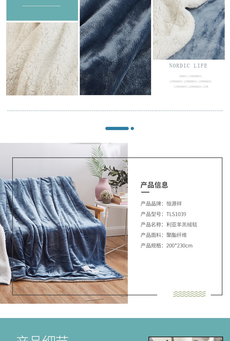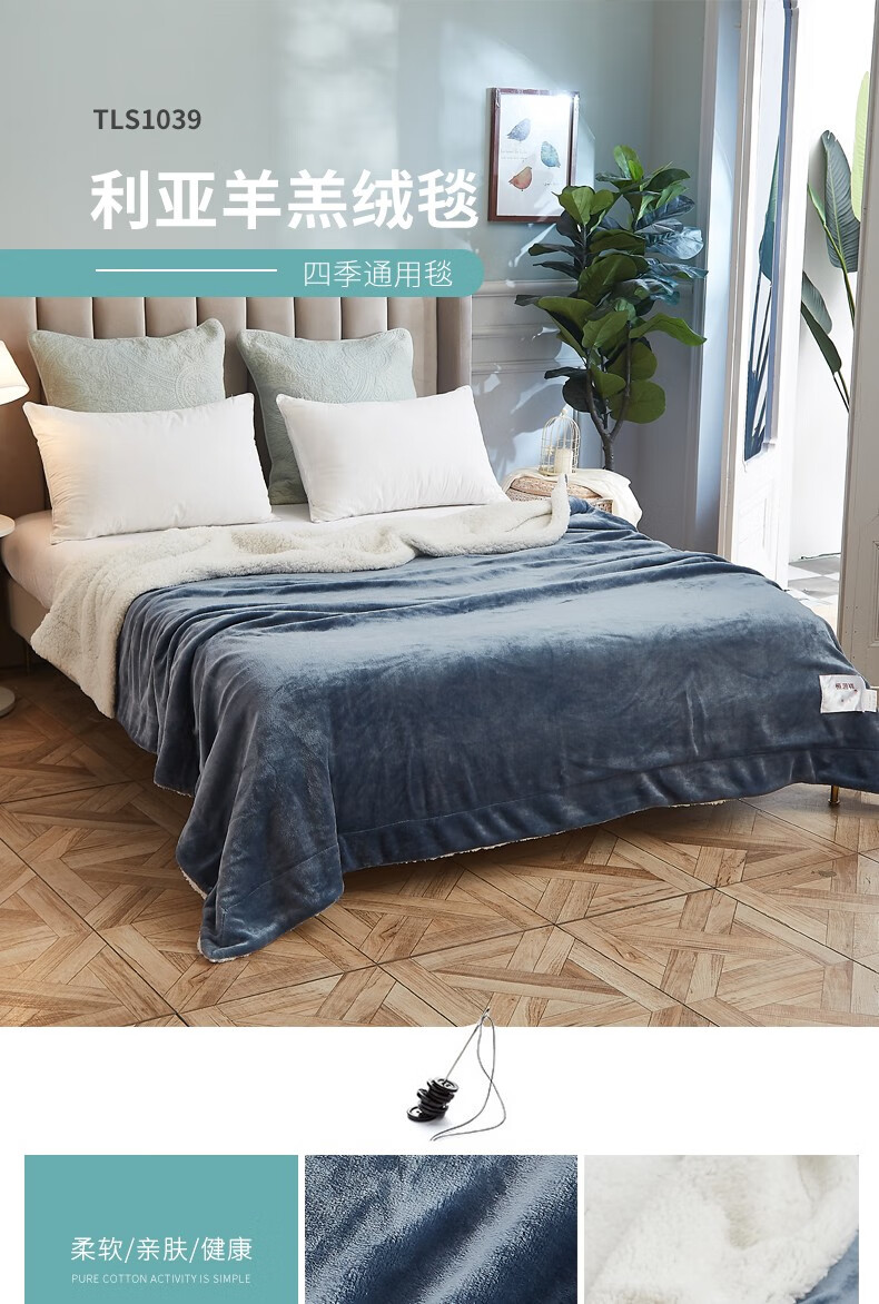 商品名称:恒源祥 利亚羊羔绒毯 TLS1039 2200g 200*230cm