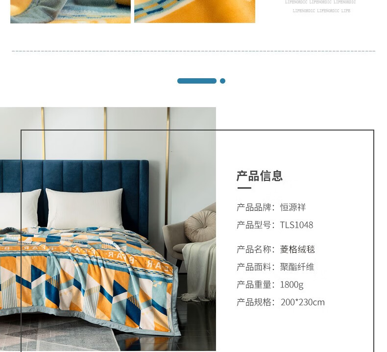 商品名称:恒源祥 菱格绒毯 TLS1048 1800g 200*230cm