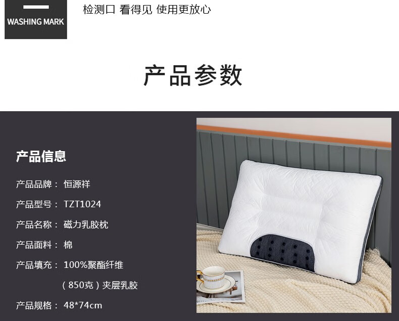 商品名称:恒源祥 磁力乳胶枕 TZT1024 850g