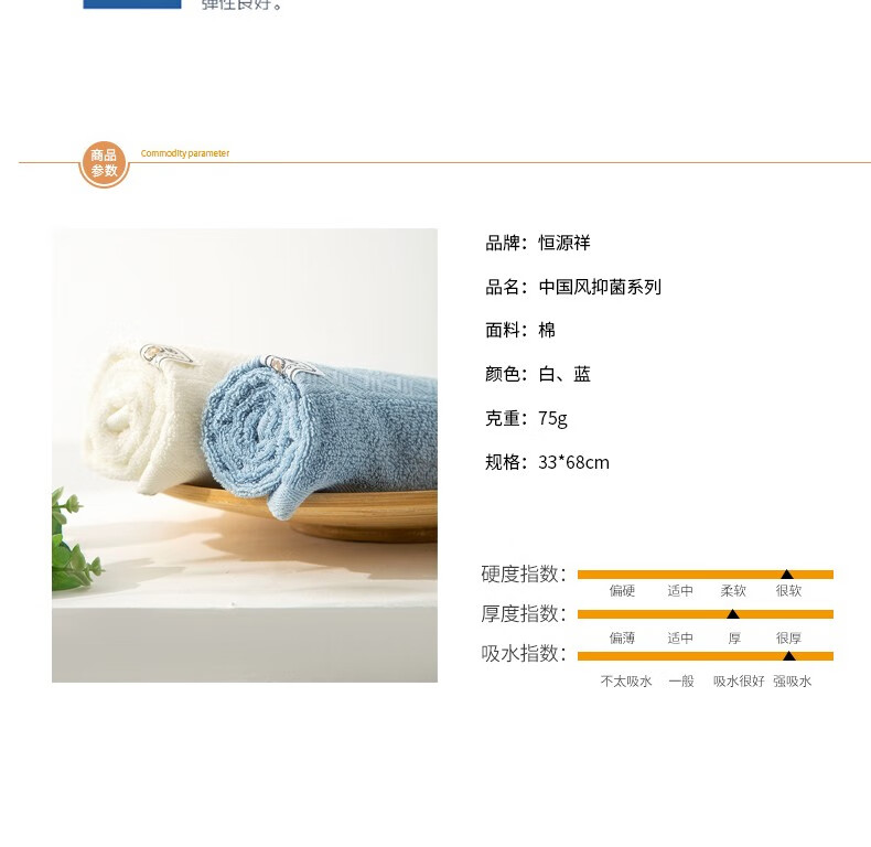 商品名称:恒源祥 中国风抑菌系列 75g 33*68cm 四条装 颜色随机