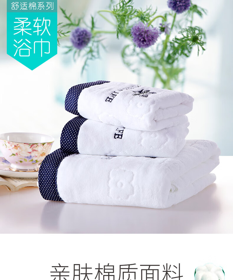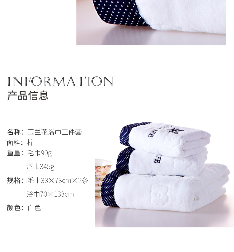 商品名称:恒源祥 玉兰花浴巾三件套 毛巾33*73cm 浴巾70*133cm