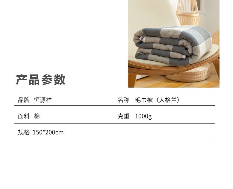 商品名称:恒源祥 毛巾被(大格兰)TSB2041 1000g 150*200cm