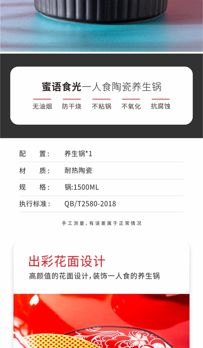 商品名称:菲米生活(PHMI) 蜜语食光 一人食陶瓷养生锅 FM-YS2111
