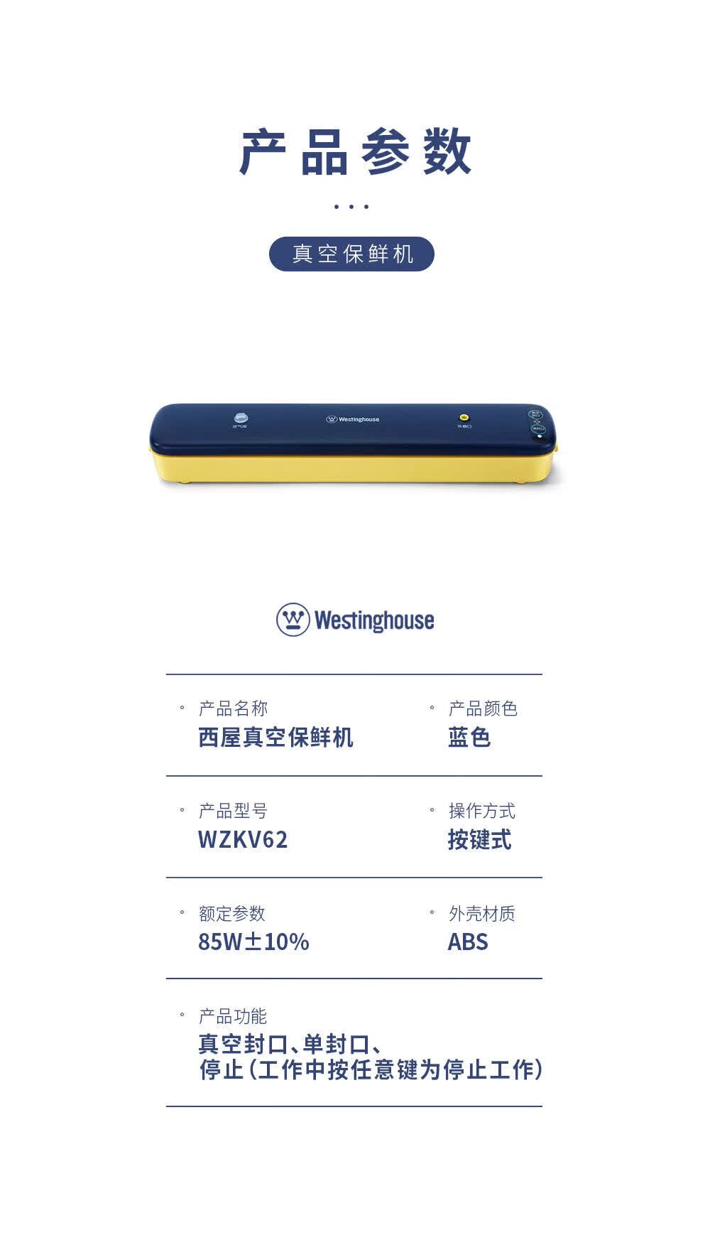 商品名称:西屋(Westinghouse)真空保鲜机 WZKV62
