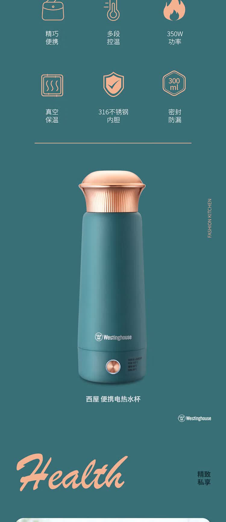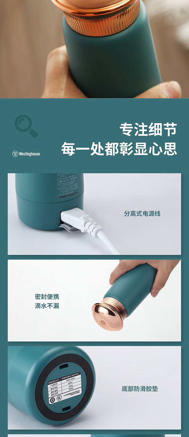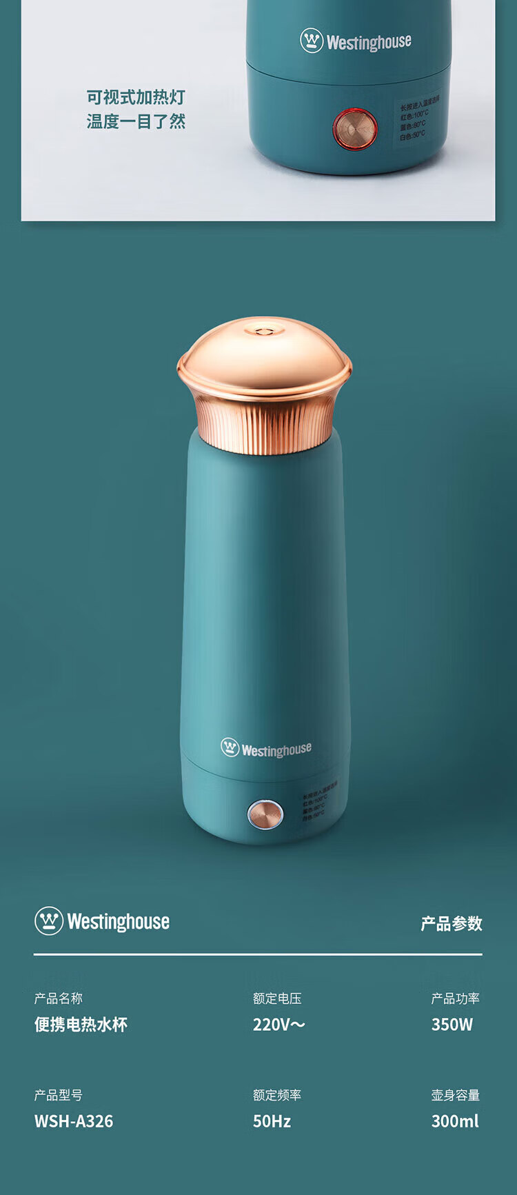 商品名称:西屋(Westinghouse)便携电热水壶 WSH-A326 300ML