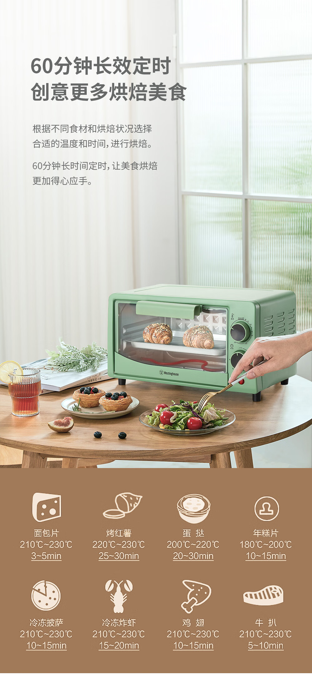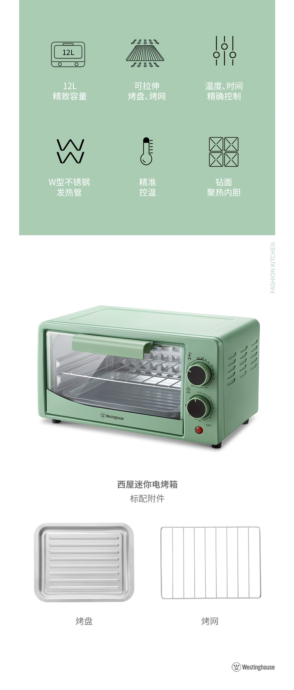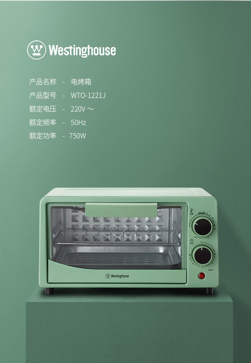 商品名称:西屋(WESTINGHOUSE)多功能电烤箱 WTO-1221J 12L