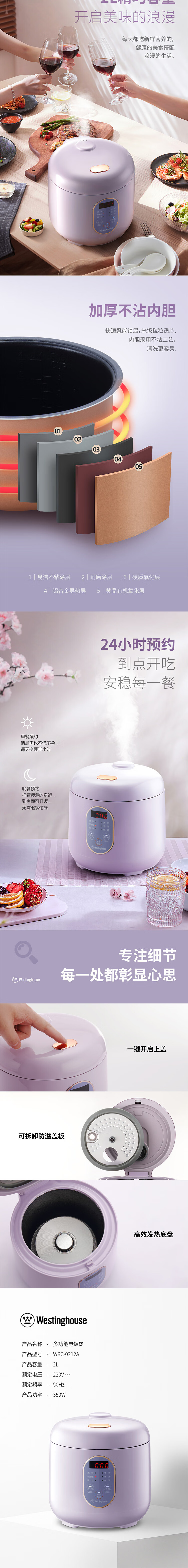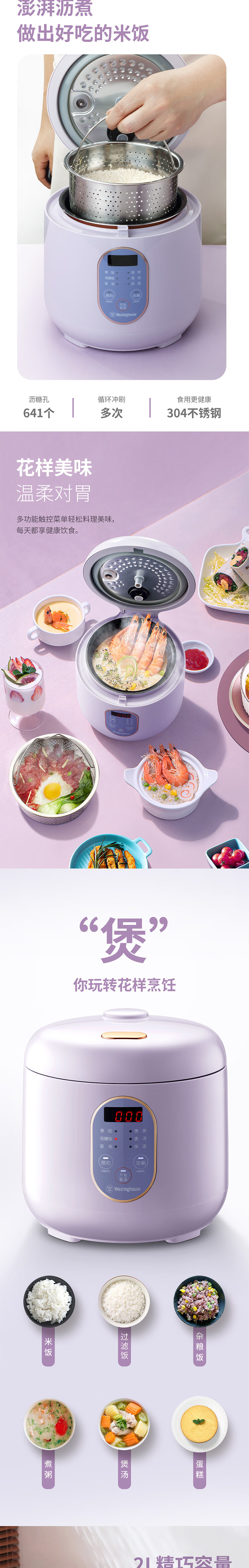 商品名称:西屋(Westinghouse)多功能电饭煲(低糖) WRC-0212A 2L