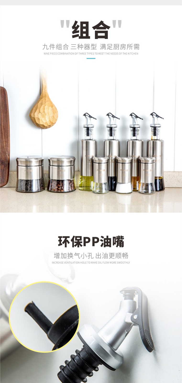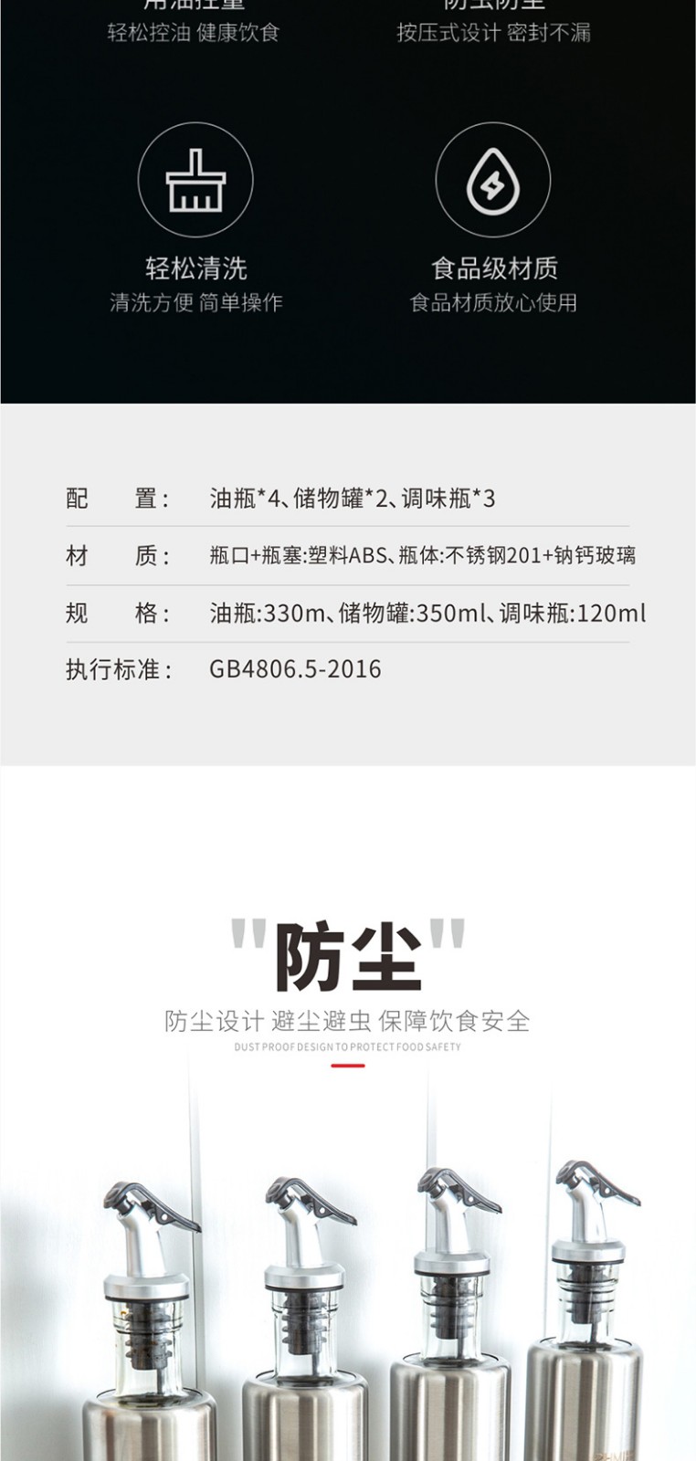 规格 :油瓶:330ml;储物罐:350ml调味瓶:120ml