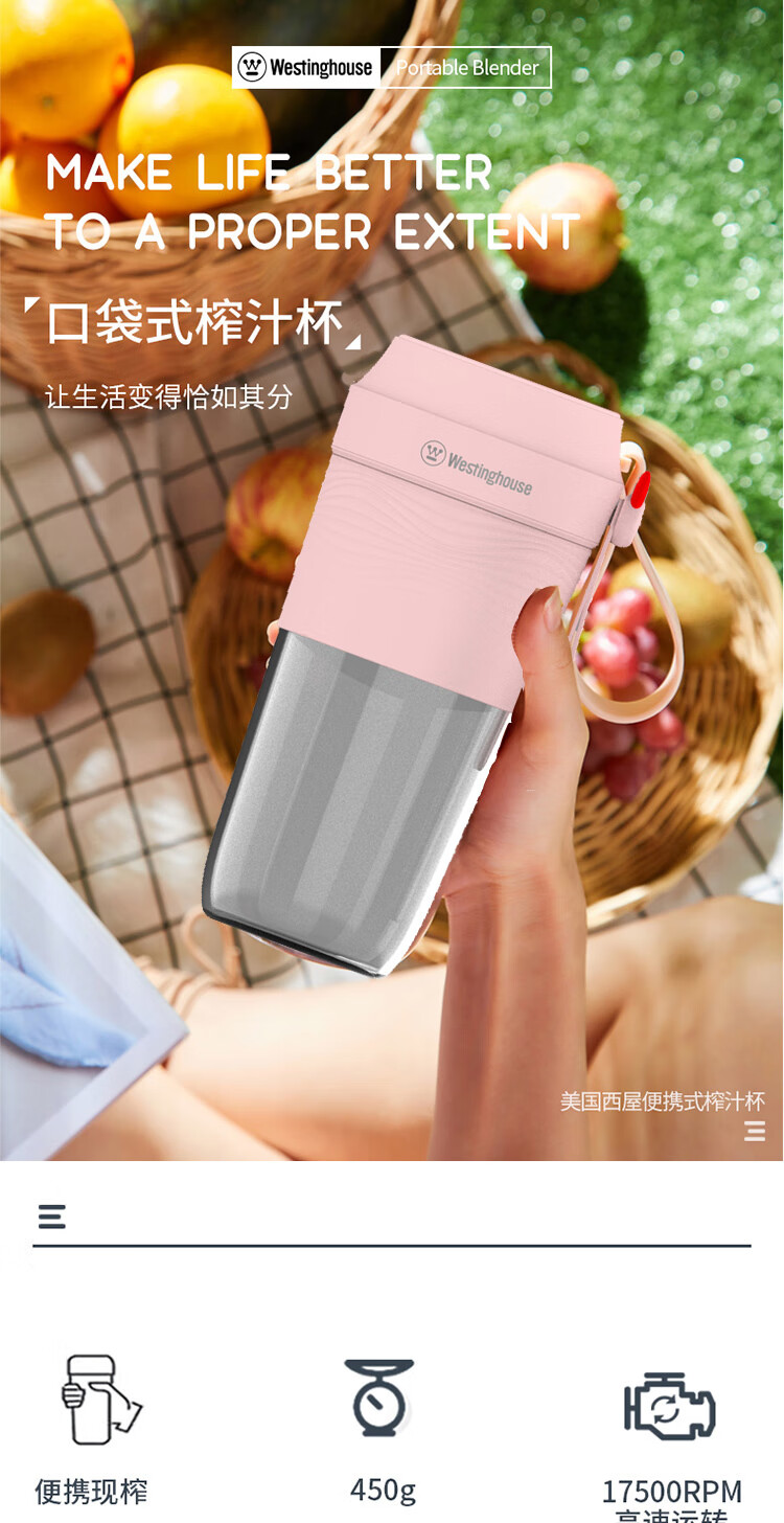 商品名称:西屋(WESTINGHOUSE)便携榨汁杯 WSX-707 300ml