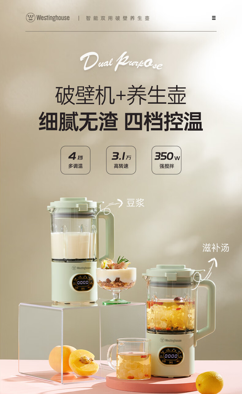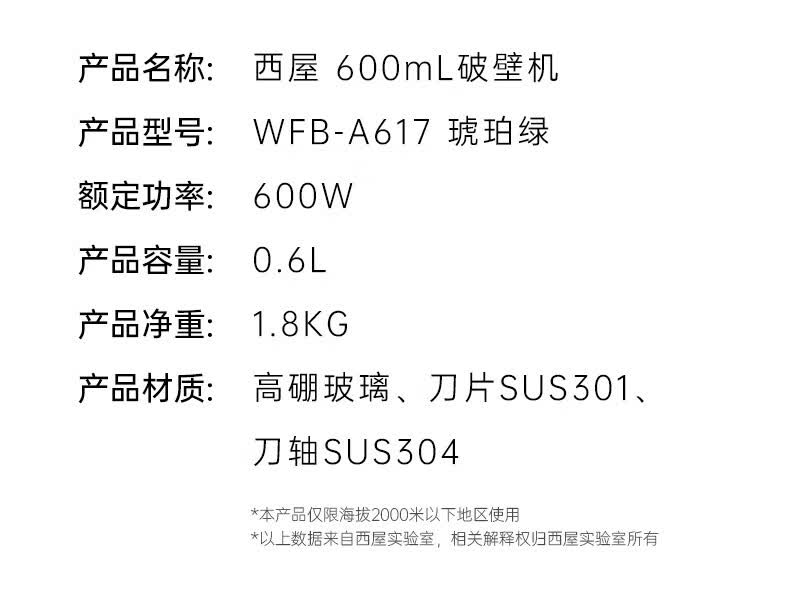 商品名称:西屋(Westinghouse)破壁料理机 WFB-A617 600mL