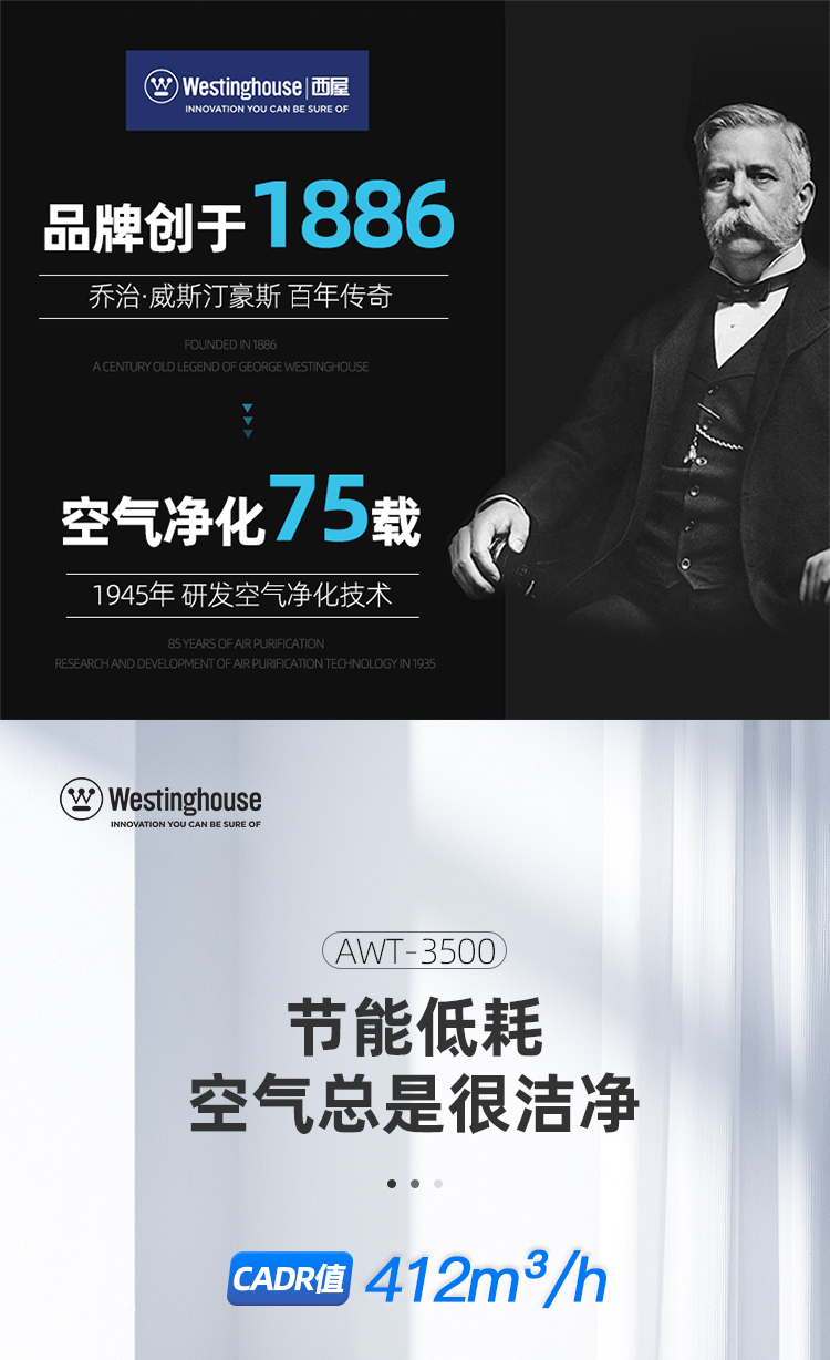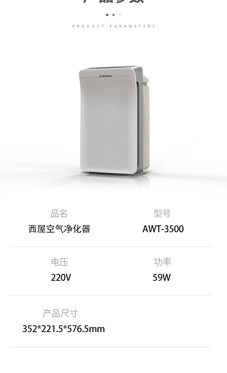 商品名称:西屋(Westinghouse)空气净化器 AWT-3500
