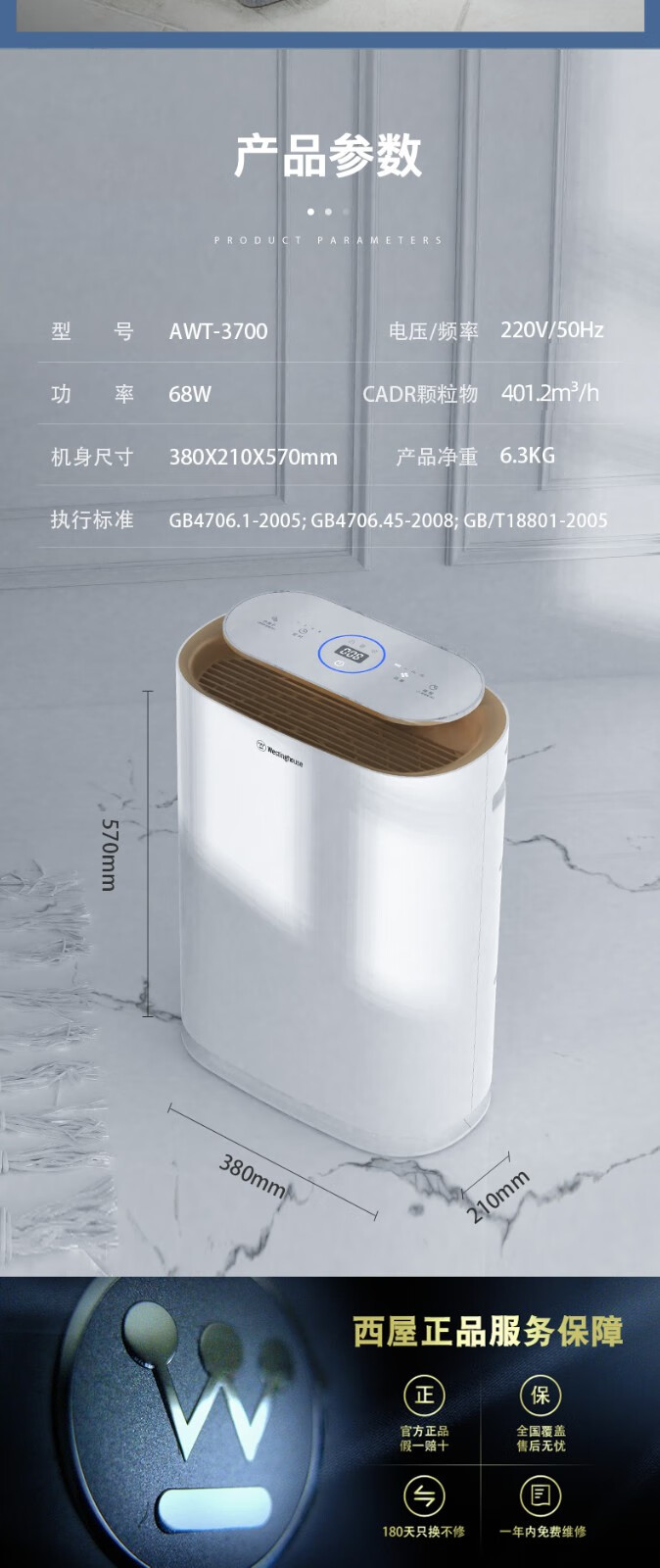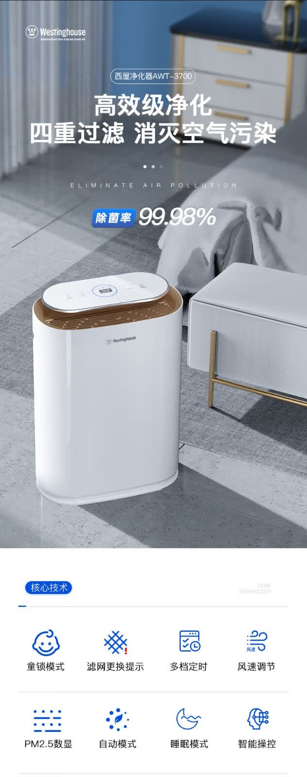 商品名称:西屋(Westinghouse)空气净化器 AWT-3700
