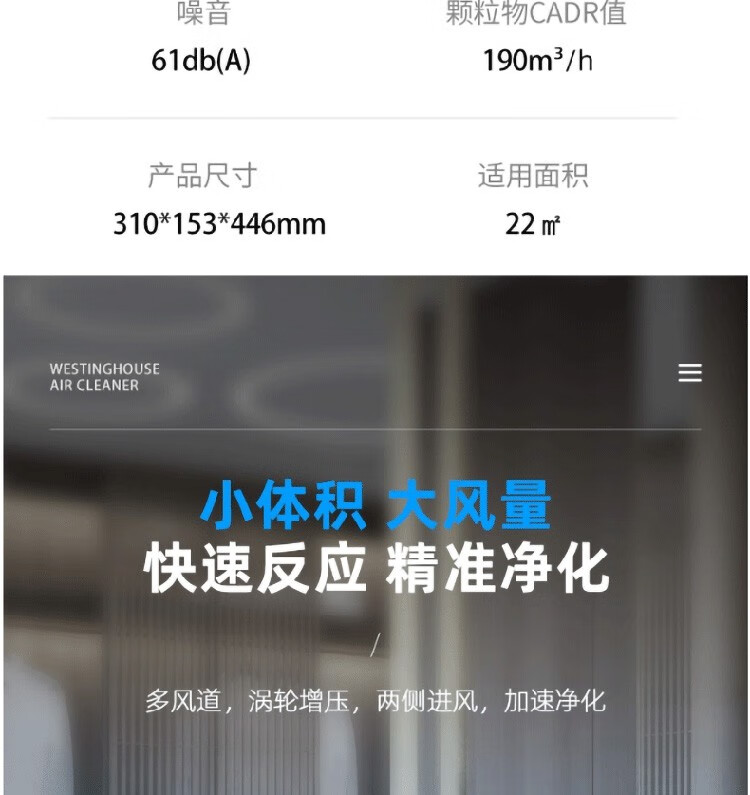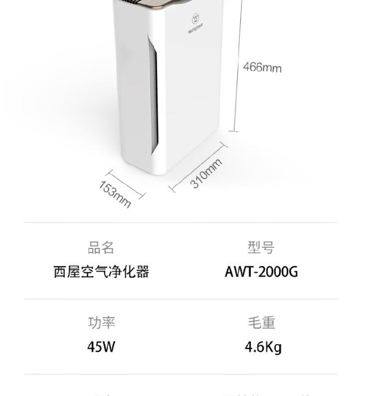 商品名称:西屋(Westinghouse)空气净化器 AWT-2000G