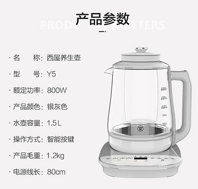 商品名称:西屋( Westinghouse) 电煮壶Y5 1.5L