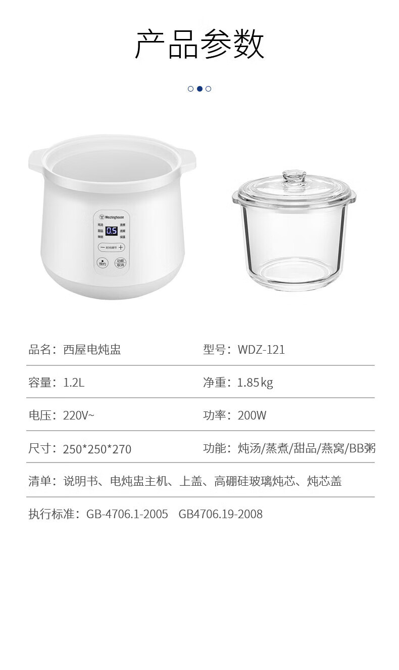 商品名称:西屋(Westinghouse)电炖盅 WDZ-121 1.2L