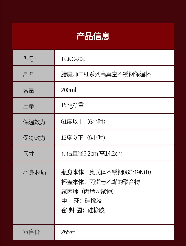 商品名称:膳魔师(THERMOS)保温杯 200ml TCNC-200