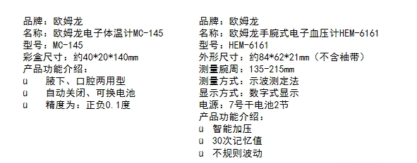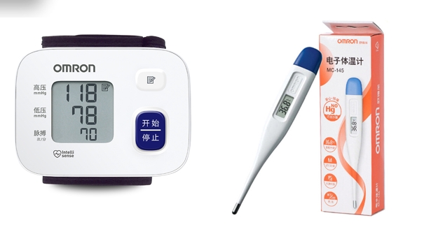 欧姆龙电子体温计MC-145*1 欧姆龙手腕式电子血压计HEM-6161*1 欧姆龙收纳包*1