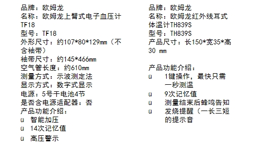 商品名称:欧姆龙(OMRON)监测礼盒两件套B