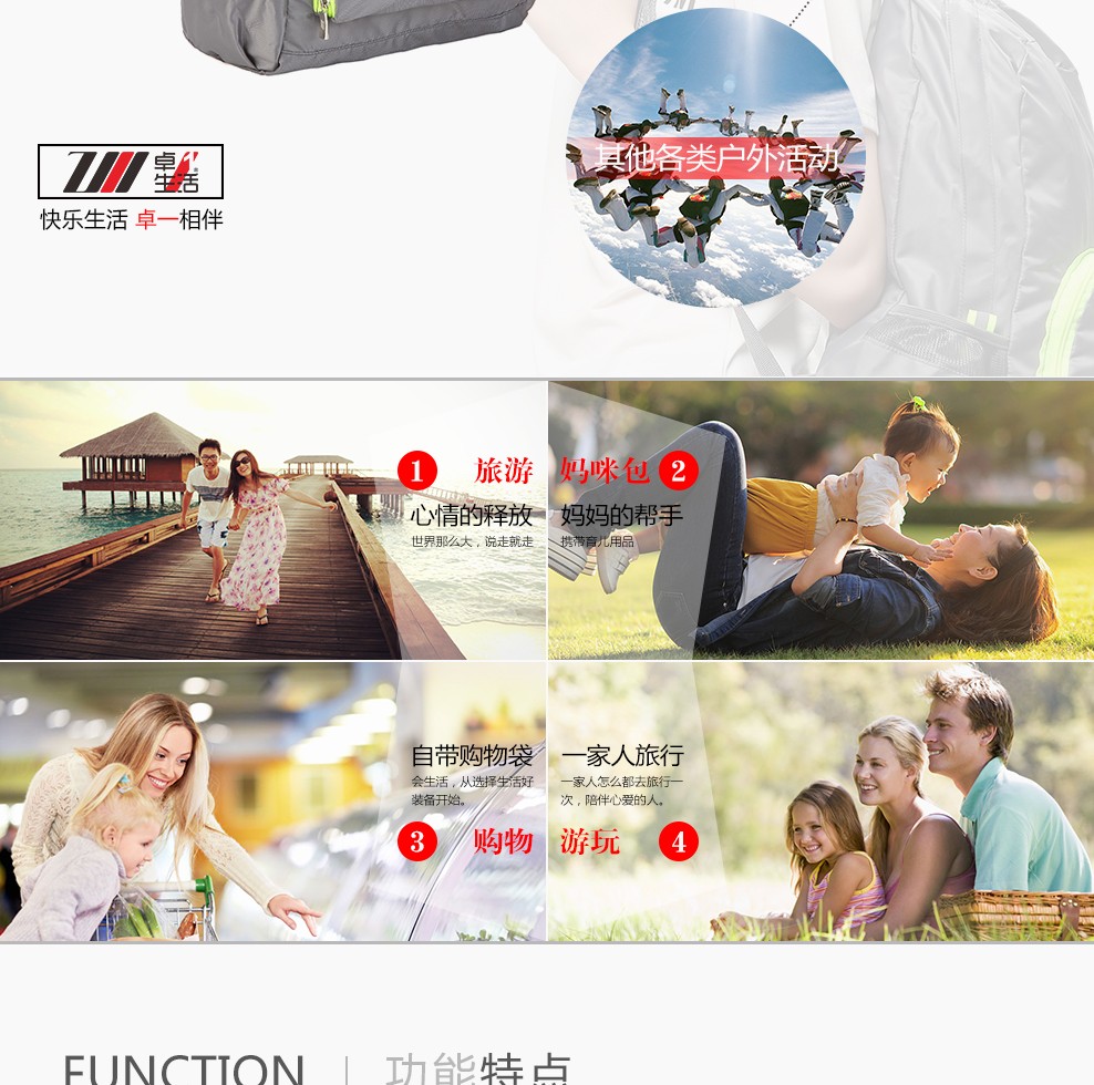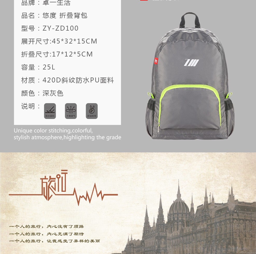 商品名称:卓一生活(ZUEI)悠度折叠背包 ZY-ZD100