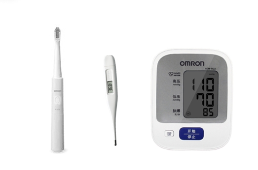 欧姆龙电子体温计MC-141*1 欧姆龙上臂式电子血压计 HEM-7122*1 欧姆龙声波式电动牙刷TF-B08-W(白)*1 欧姆龙收纳包*1