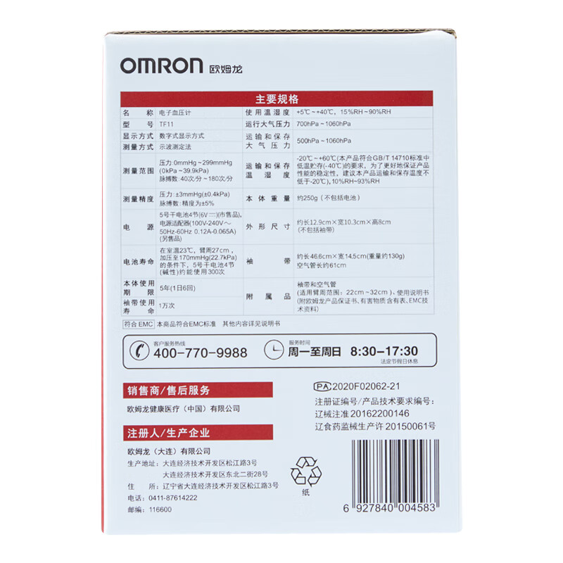 商品名称:欧姆龙(OMRON)上臂式电子血压计 TF11