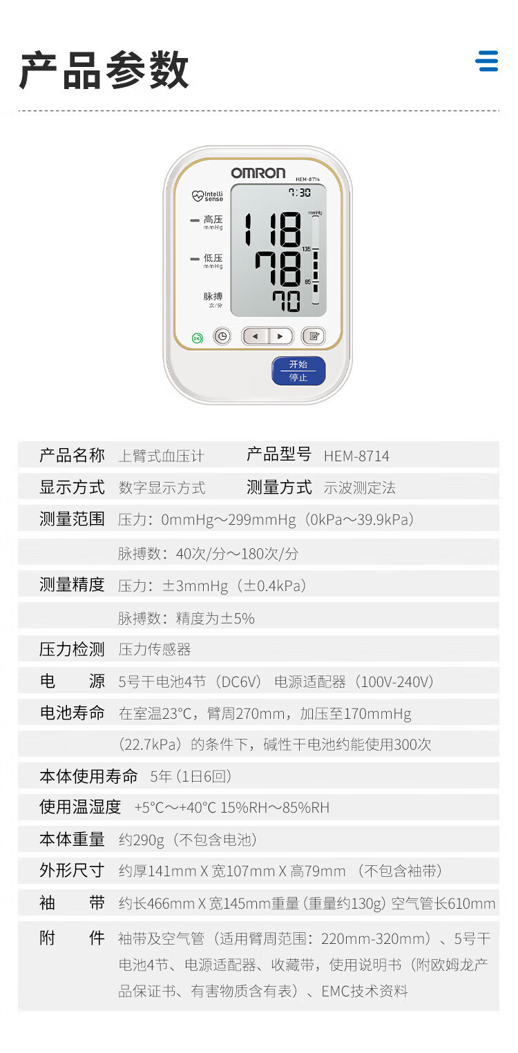 商品名称:欧姆龙(OMRON)上臂式电子血压计 HEM-8714