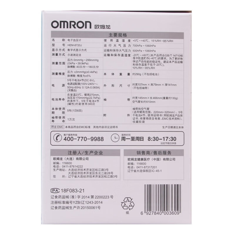 商品名称:欧姆龙 上臂式电子血压计 HEM-8720J
