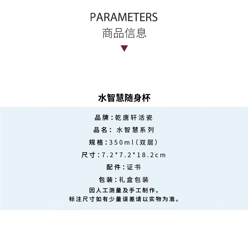 商品名称:乾唐轩 水智慧随身杯 330ml(双层)