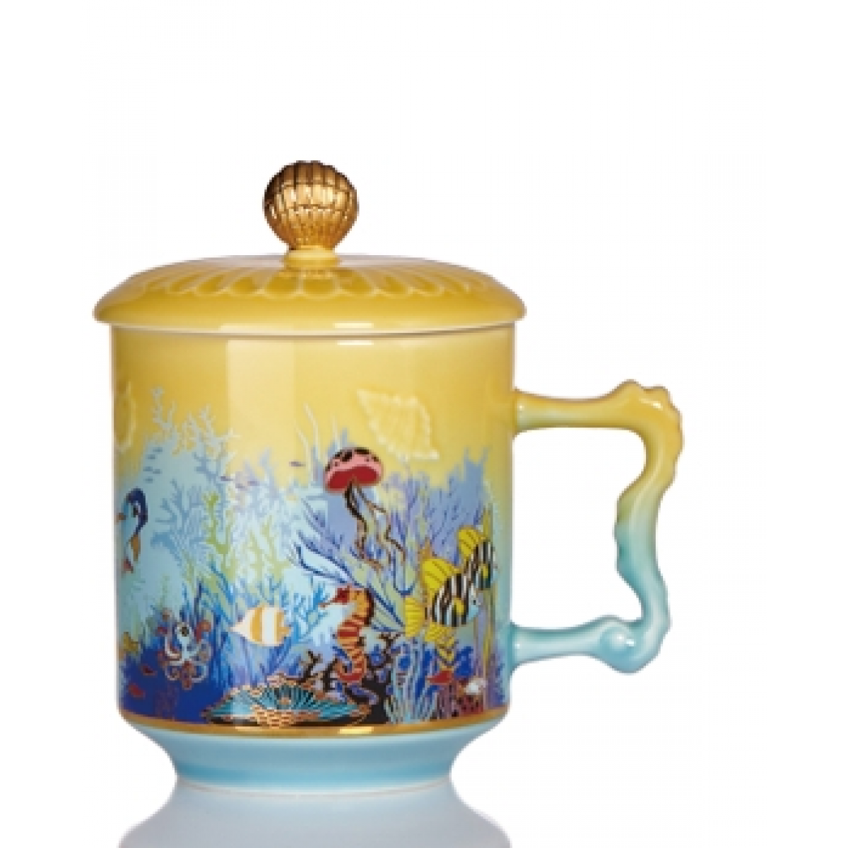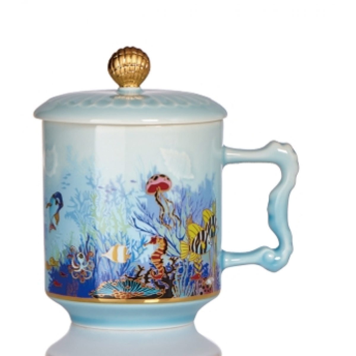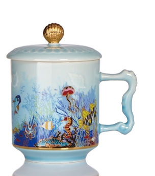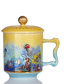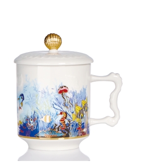 乾唐轩 鸿图大展随身(木纹盖)牙白+鎏金 330ml(双层)