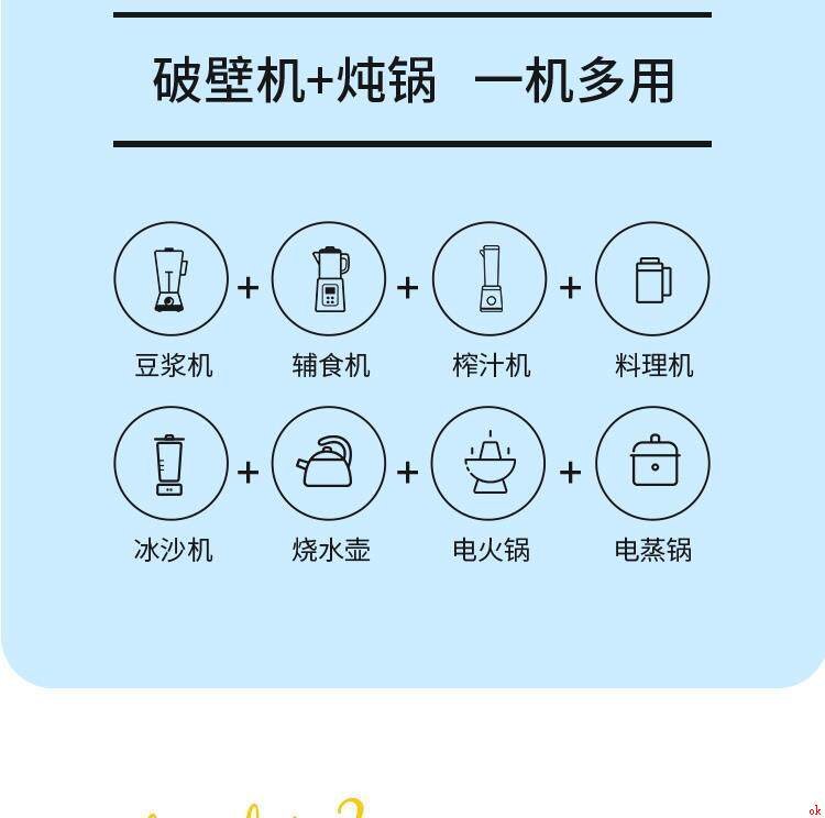 切菜,碎肉,碎冰,干磨,搅拌,打蛋,制奶昔,榨汁