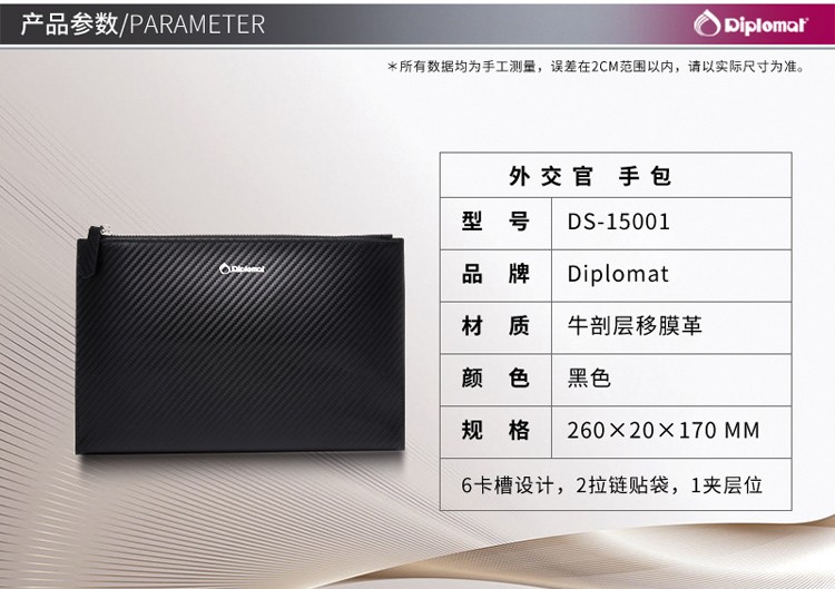 商品名称:外交官Diplomat 外交官时尚休闲轻便手包 DS-15001 黑色
