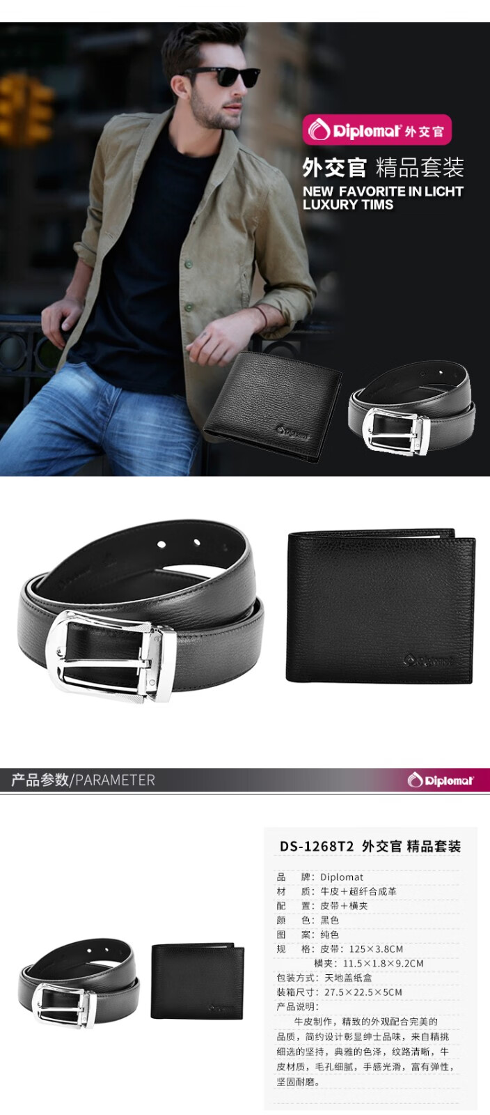 商品名称:Diplomat 外交官 皮具套装 DS-1268T2 黑色