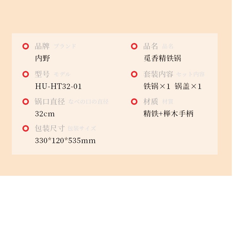 商品名称:内野(UCHINO) 觅香精铁锅 HU-HT32-01