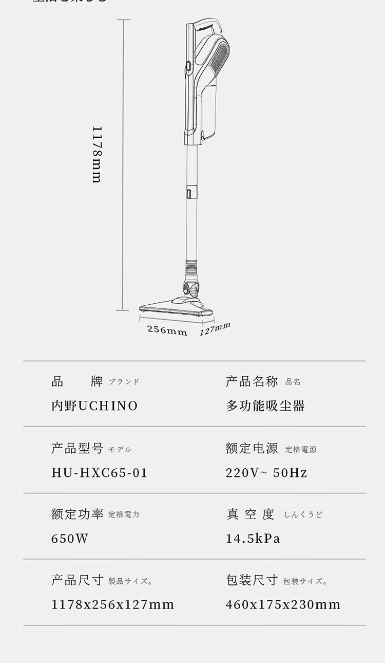 商品名称:内野(UCHINO)吸尘器 HU-HXC65-01