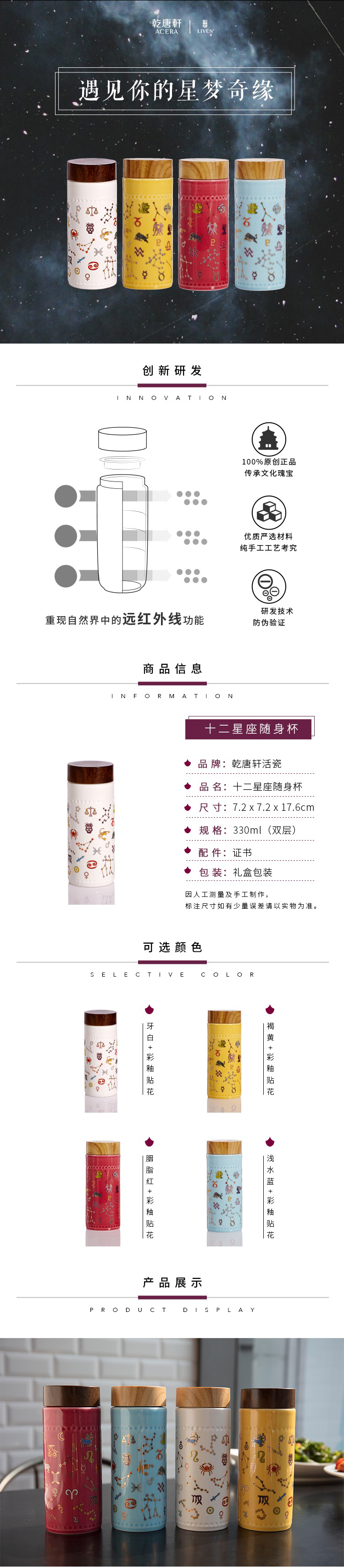 商品名称:乾唐轩 12星座随身杯(木纹盖)330ml (双层)