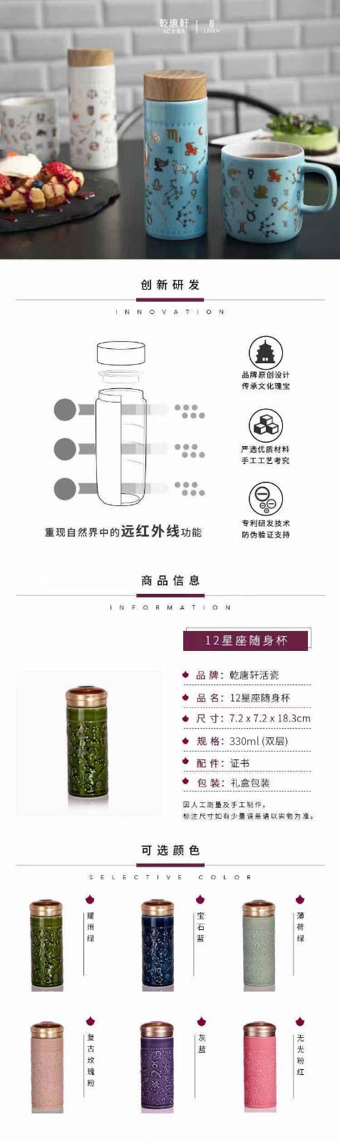商品名称:乾唐轩 12星座随身杯 330ml (双层)