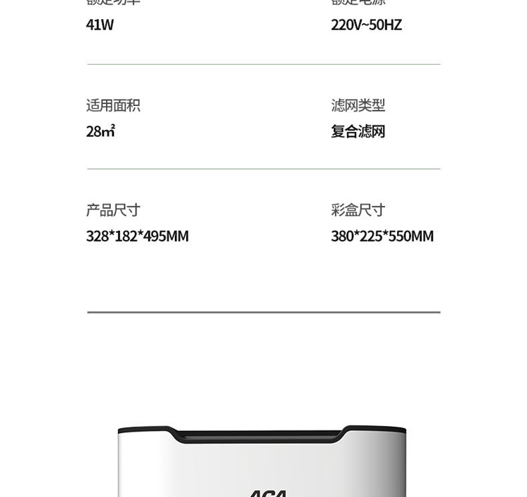 商品名称:ACA北美电器 空气净化器 ALY-20KJ08S