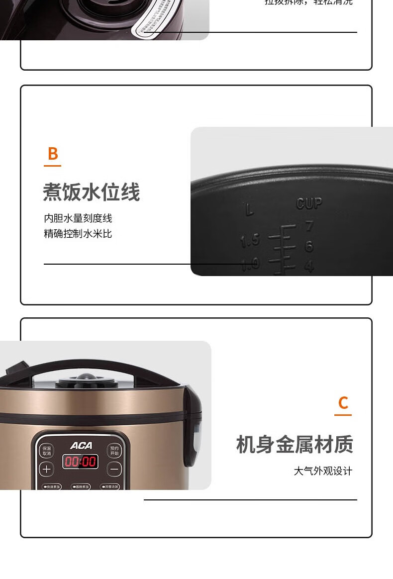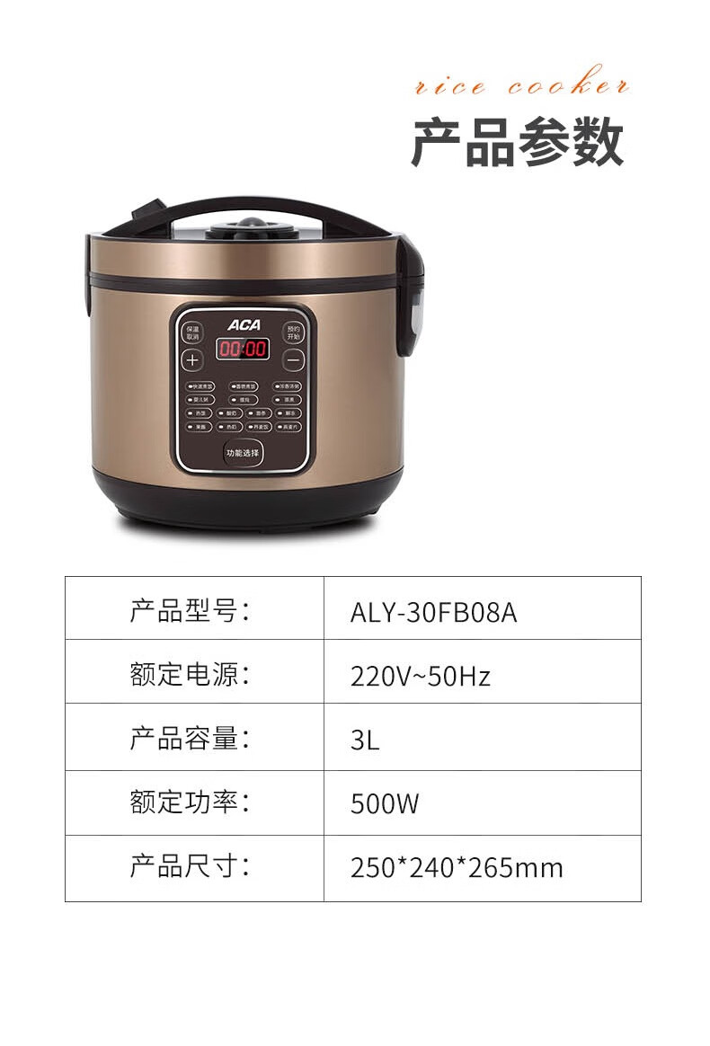 商品名称:北美电器(ACA)ALY-30FB08A 微电脑电饭煲