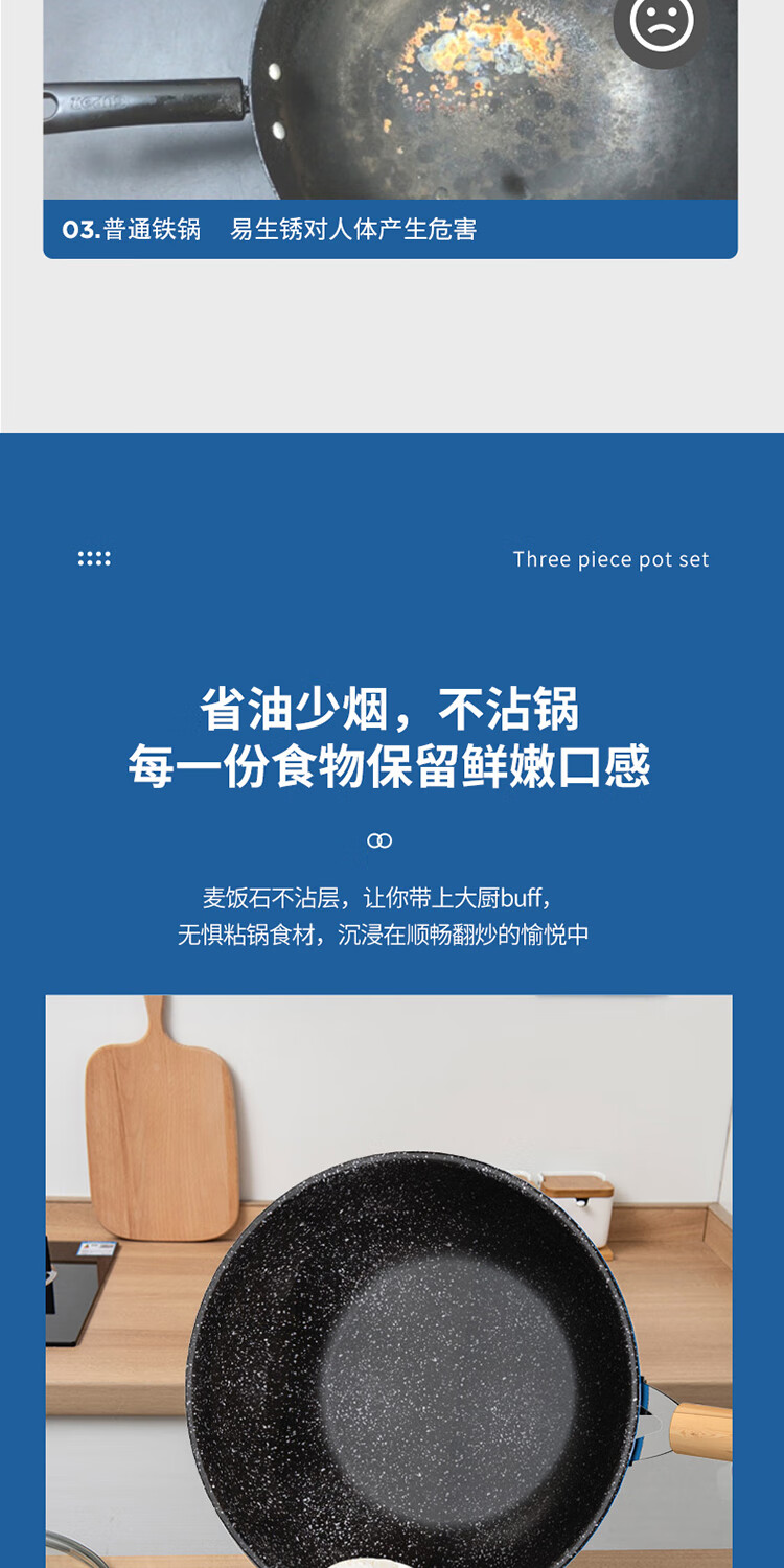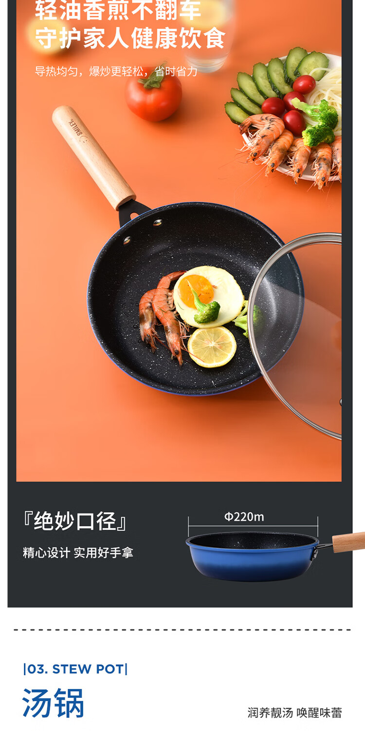 德世朗(DESLON) 致简精铁不粘锅三件套 DFS-TZ954B-RD