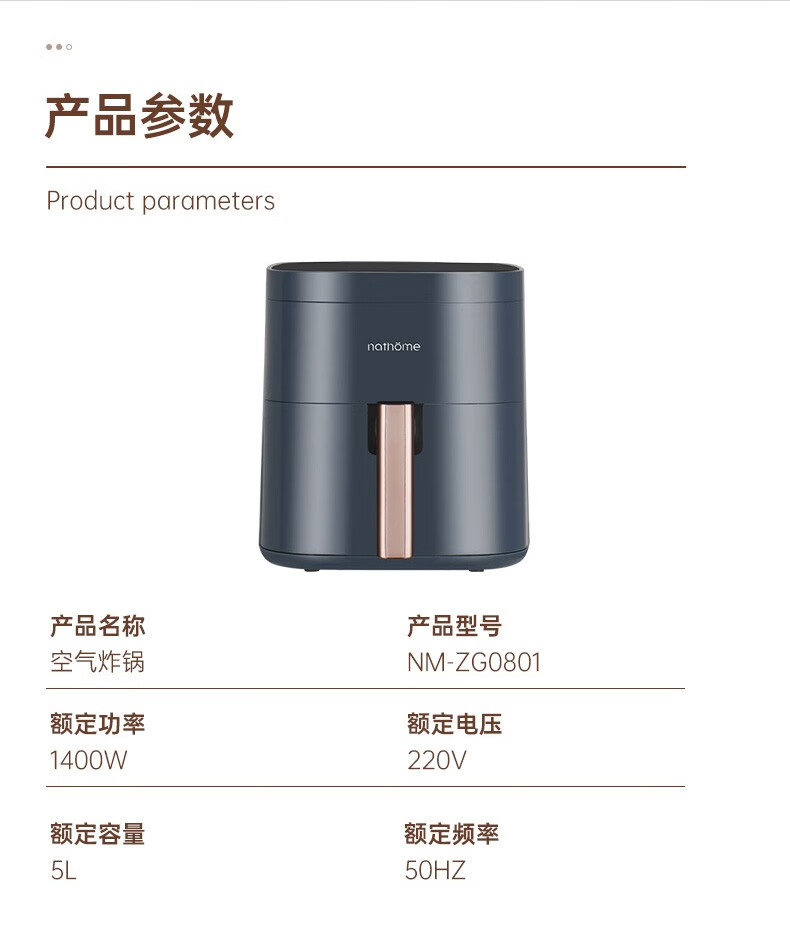 商品名称:北欧欧慕(nathome) 森特空气炸锅NM-ZG0801