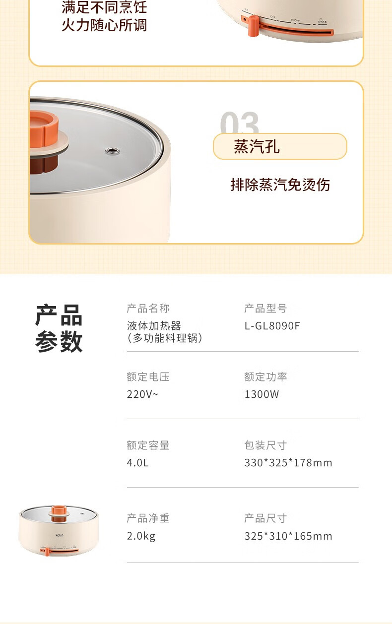 商品名称:歌林(kolin) 特莱电火锅L-GL8090F