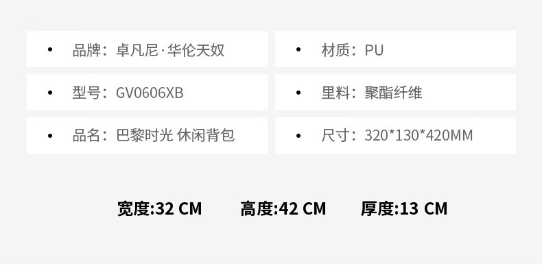 商品名称:卓凡尼·华伦天奴(GIOVANNI VALENTINO) 巴黎时光休闲背包 GV0606XB