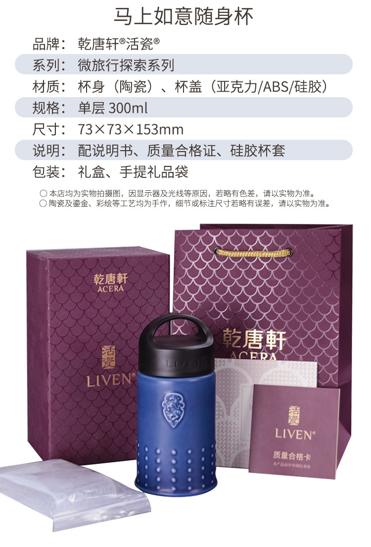 商品名称:乾唐轩 马上如意旅行随身杯(小)300ml (单层)