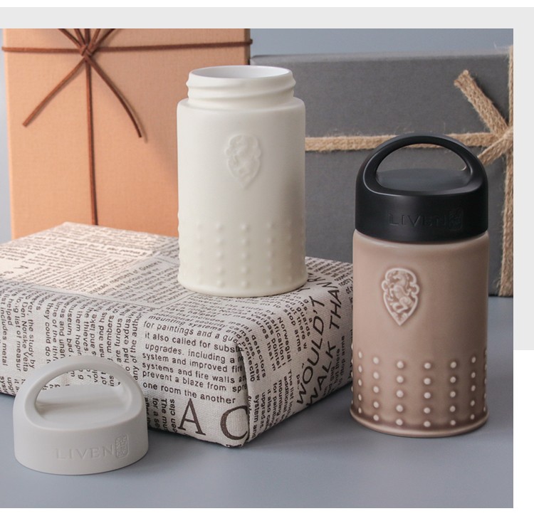 乾唐轩 繁星随身杯 (木纹盖) 330ml (双层) 牙白