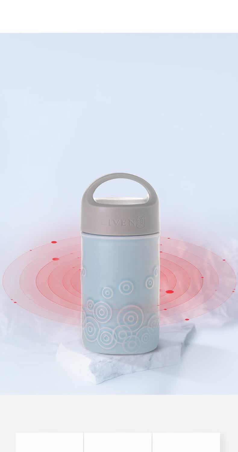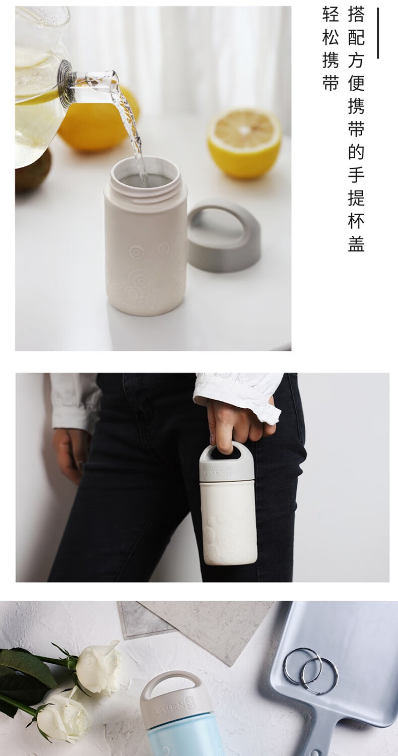 乾唐轩 LIVEN水德随身杯(木纹盖) 330ml(双层)透明白+彩釉贴花