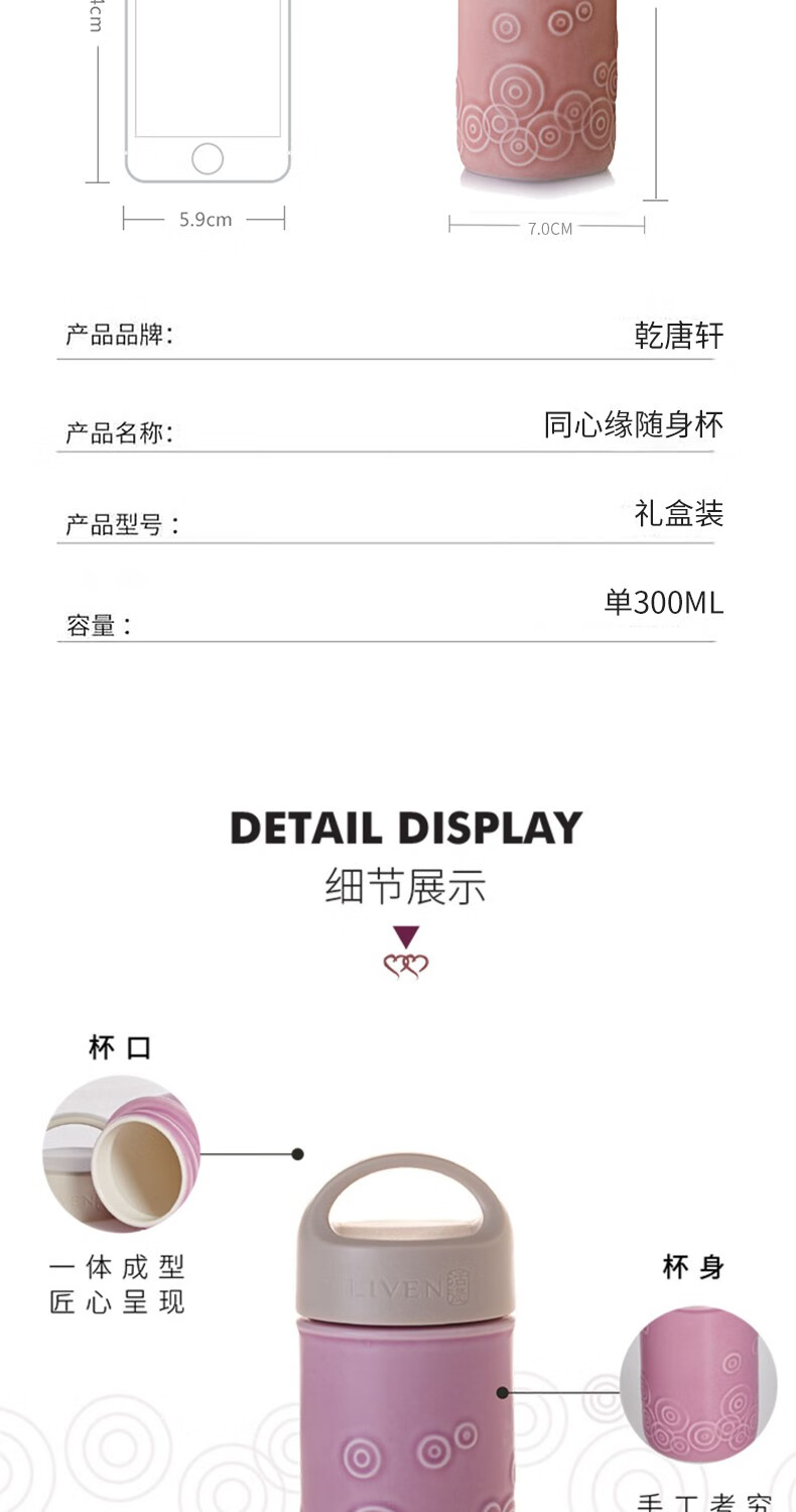 商品名称:乾唐轩 同心缘旅行随身杯(小)300ml (单层)