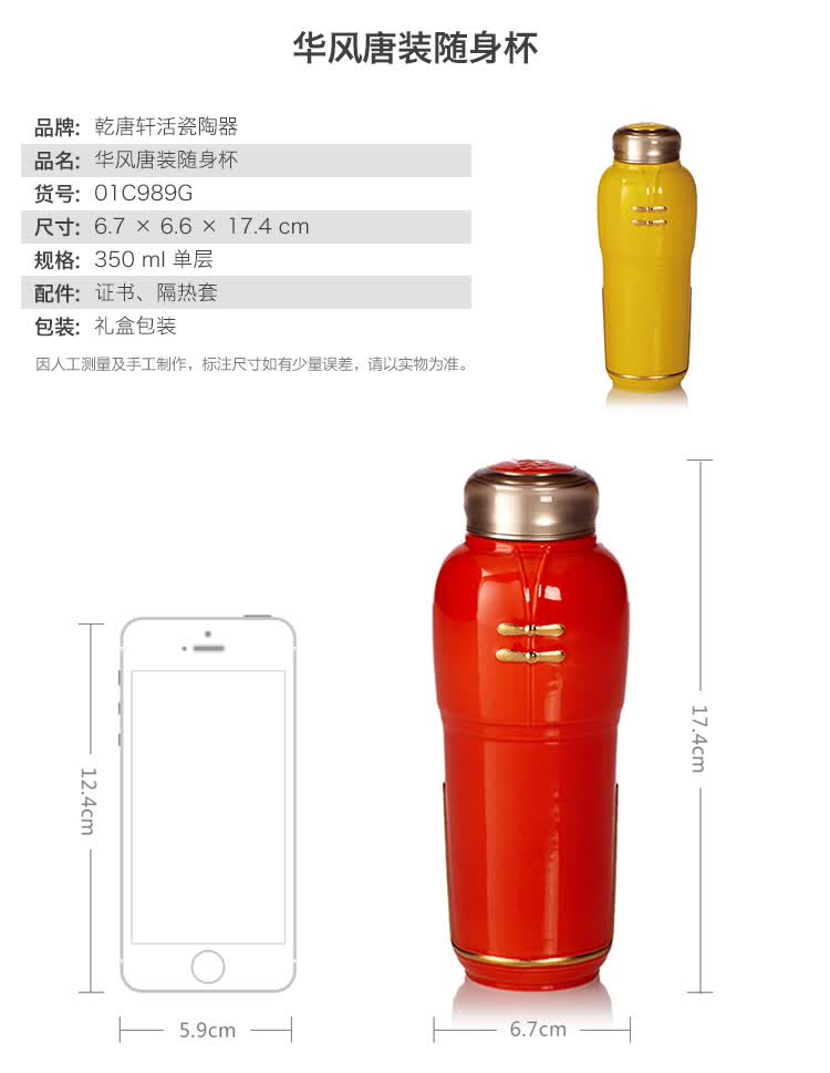 商品名称:乾唐轩 华风唐装随身杯 300ml (单层)