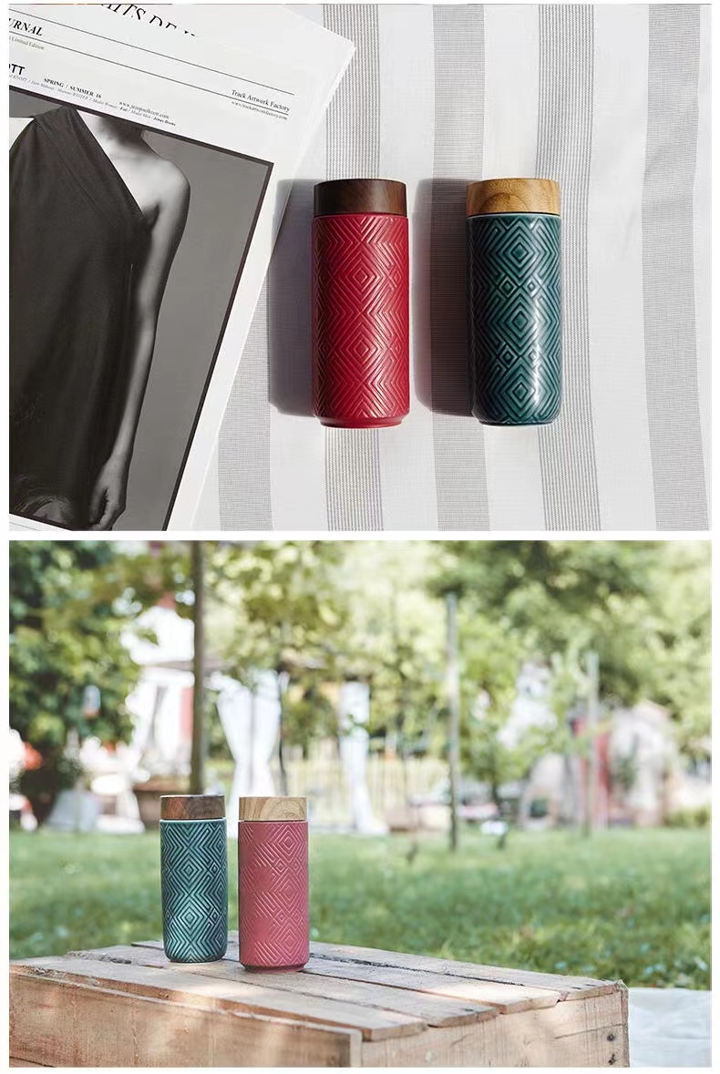乾唐轩 奇迹随身杯 (木纹盖) 330ml (双层)