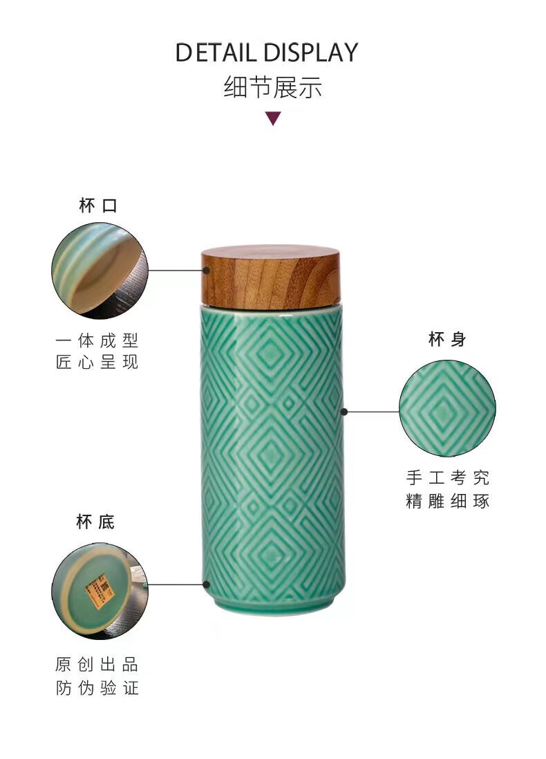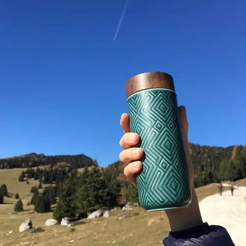 乾唐轩 经典富贵随身杯 耀州绿(高温)450ml (双层)