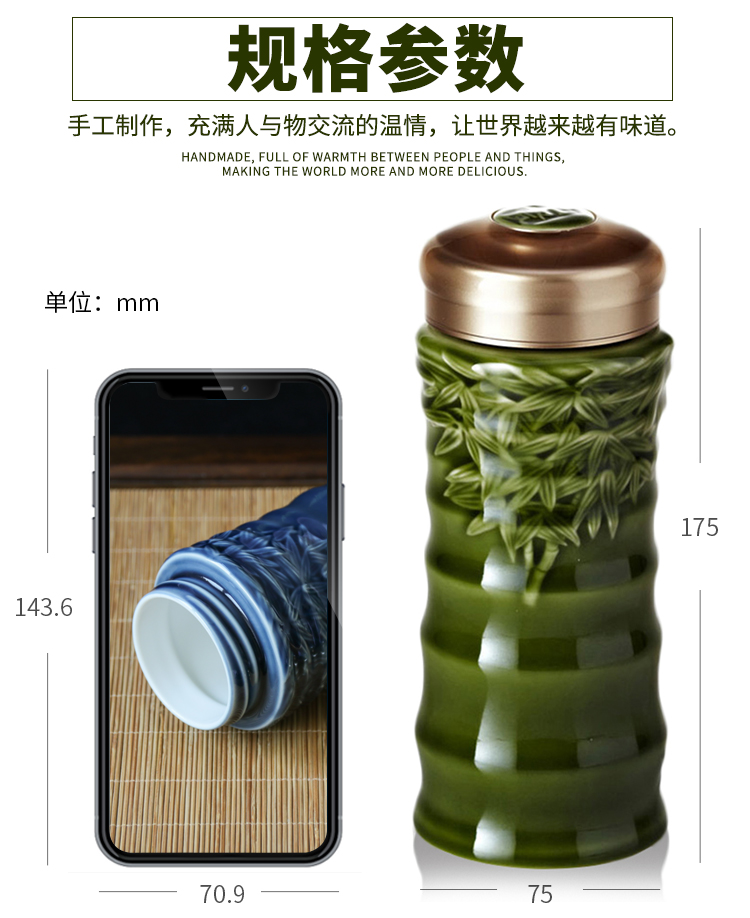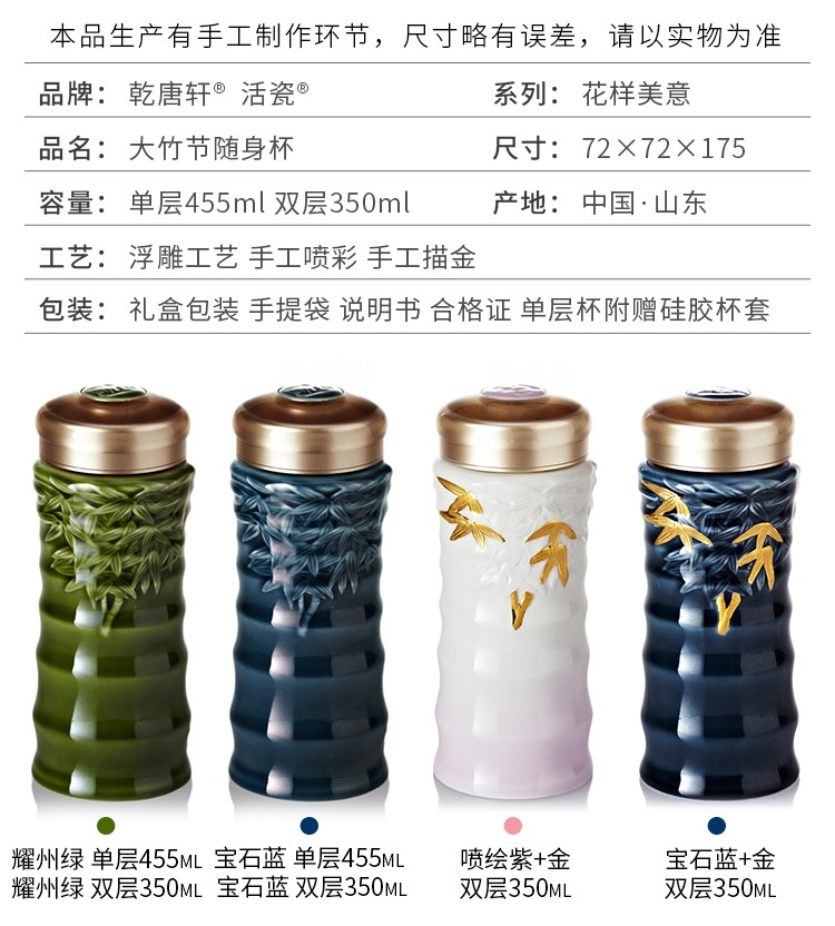 商品名称:乾唐轩 竹节随身杯(大)330ml (双层)